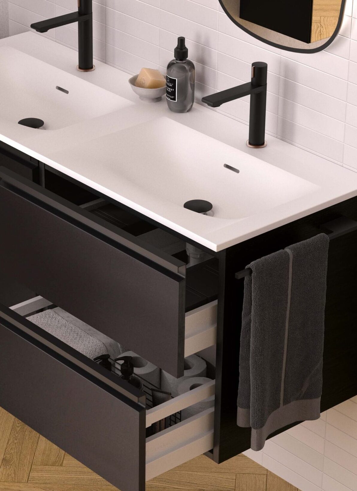 Tout cela dans le but de vous proposer non-seulement des meubles de la salle de bains de qualité mais également de véritables solutions d’aménagement sur mesure. Nos meubles s’adaptent à tous les styles et à toutes les configurations de la salle de bain.