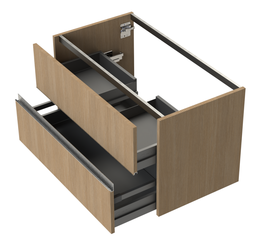 Le meuble Striato offre une esthétique moderne et raffinée qui s’intègre parfaitement à tous les styles de salle de bain.