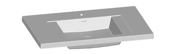Washbasin countertop in high-gloss white synthetic material, composed of polyester and calcium carbonate with ISO Gel Coat surface coating and molded overflow.