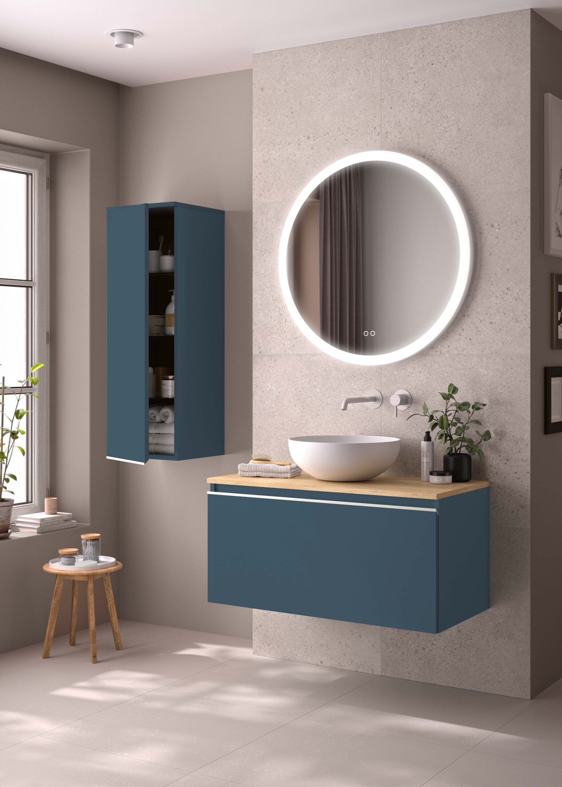 Miroir 5mm en forme ovale sérigraphié sur cadre métallique en retrait intégrant LED périphérique. Système antibuée intégré. Ruban LED 10W/m, câblé avec transformateur. Vide technique 20mm. Pose verticale uniquement. Sans interrupteur. Classe II IP44.