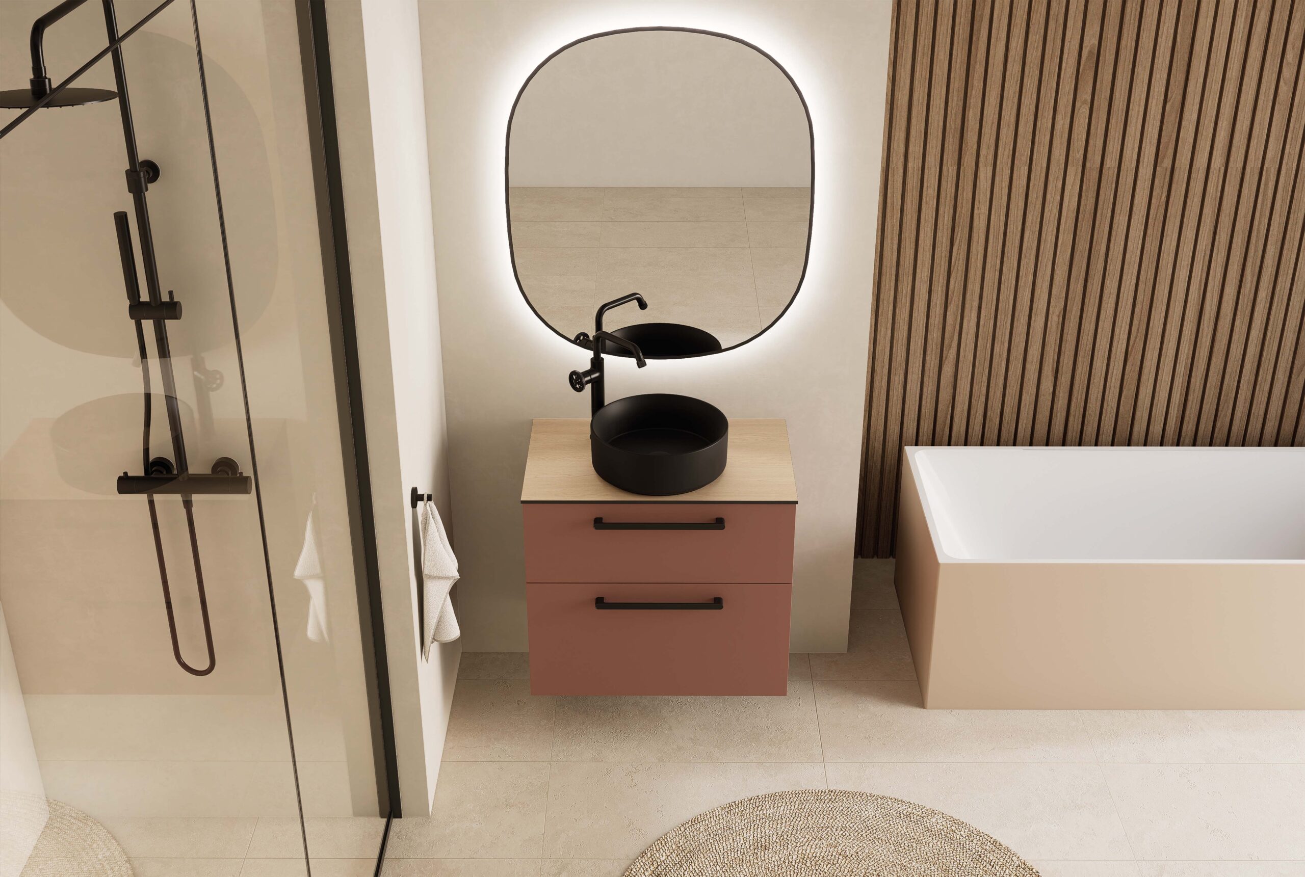 Pour la version avec rétro-éclairage, le miroir intégre un ruban LED périphérique protégée par couvercle transparent.