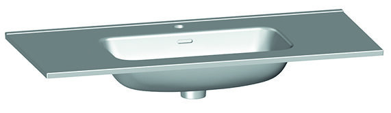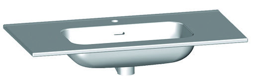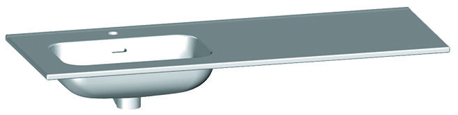 Plan vasque moulé en céramique blanc brillant.